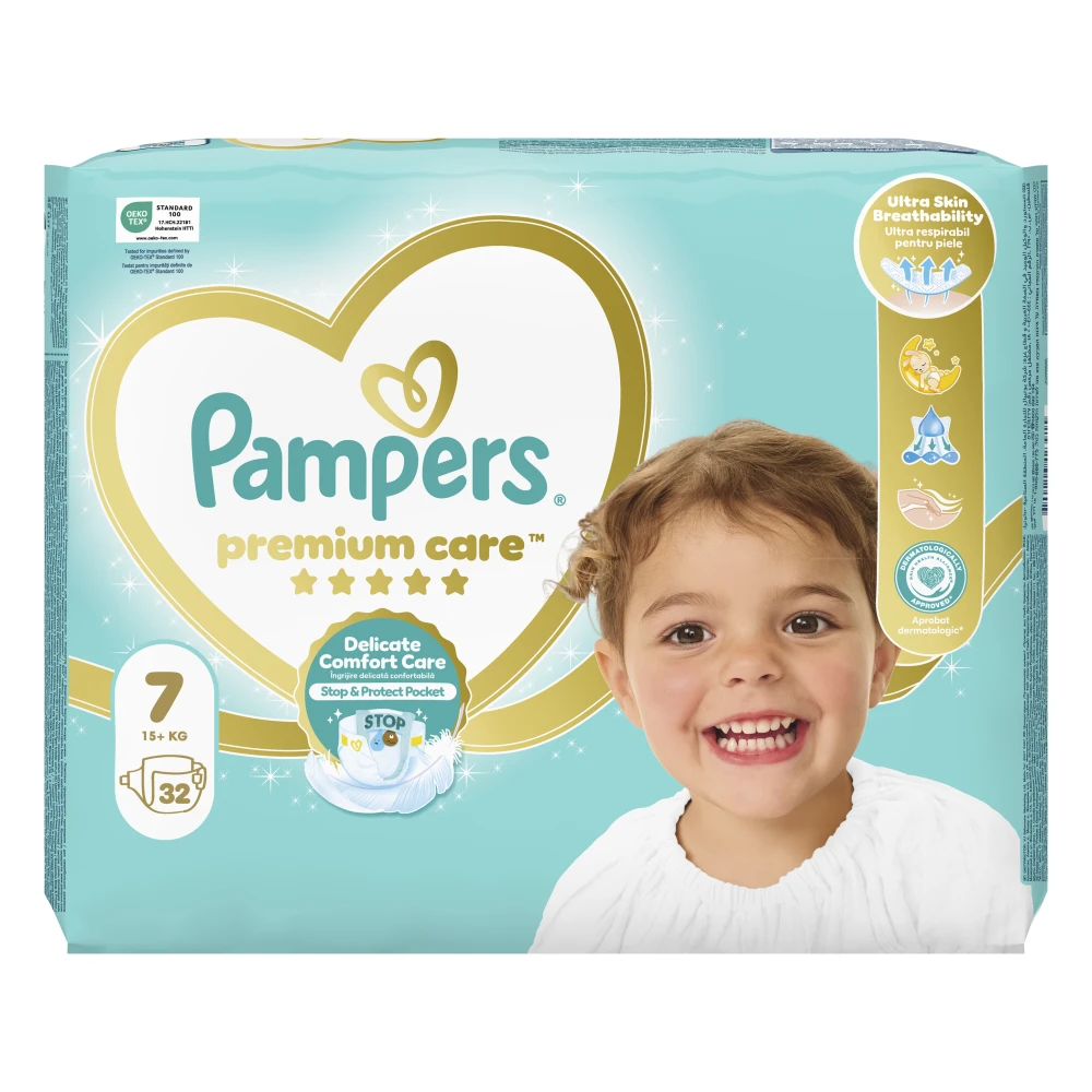 PAMPERS Premium Care πάνα μέγεθος 7 (15kg+) – 32 Πάνες